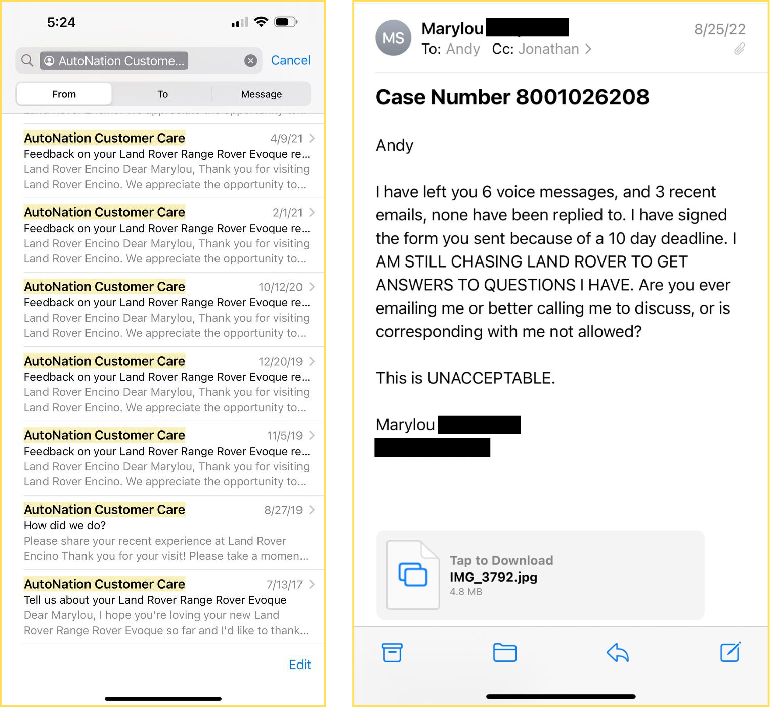 It was a bittersweet reward for six repair attempts at the dealership, countless times having the phone put down on her and even sending letters to New York and the Jaguar-Land Rover factory in Halewood, England.