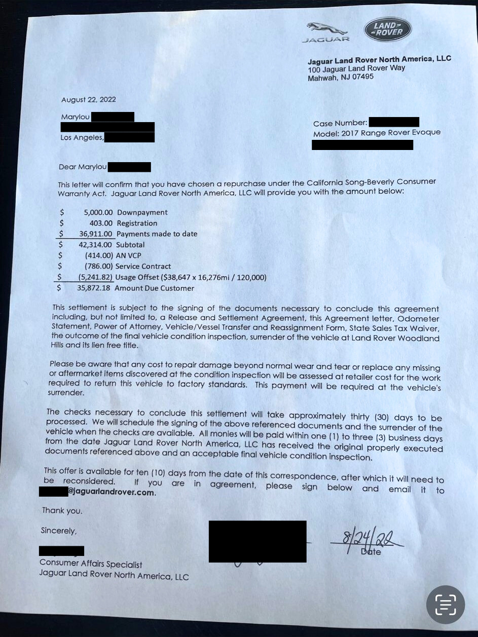 Also, ensuring you have the full paperwork and can prove your car qualifies as a ‘lemon’ under California Law is crucial.
